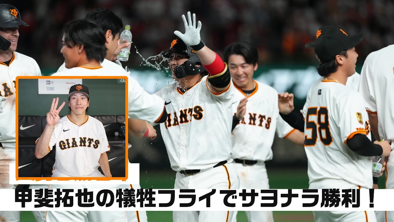 2025年4月29日の広島戦、3-3で迎えた12回裏、甲斐選手の犠牲フライでサヨナラ勝利!大勢投手は2回無失点の好投で今季3勝目をあげました!
