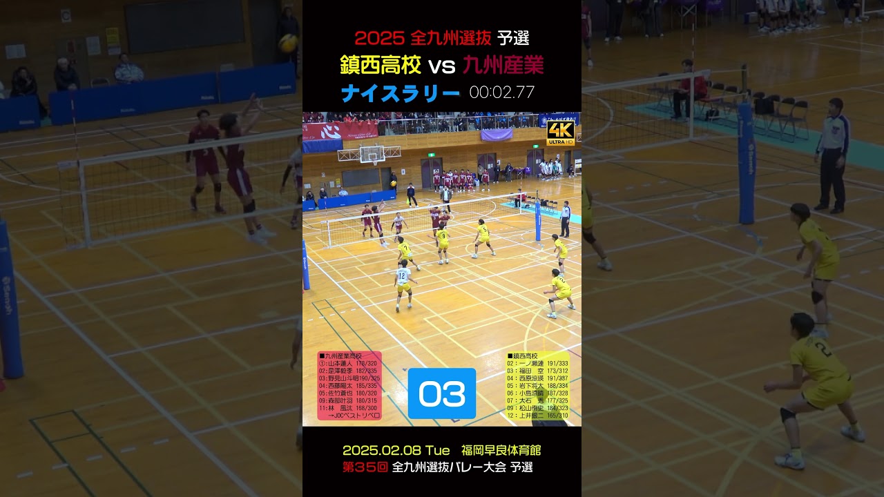 【😄鎮西 vs 九州産業ナイスラリー④】2025全九州選抜予選 #shorts #岩下将大 #一ノ瀬漣 #西原涼瑛 #鎮西バレー #九州産業バレー #林風汰