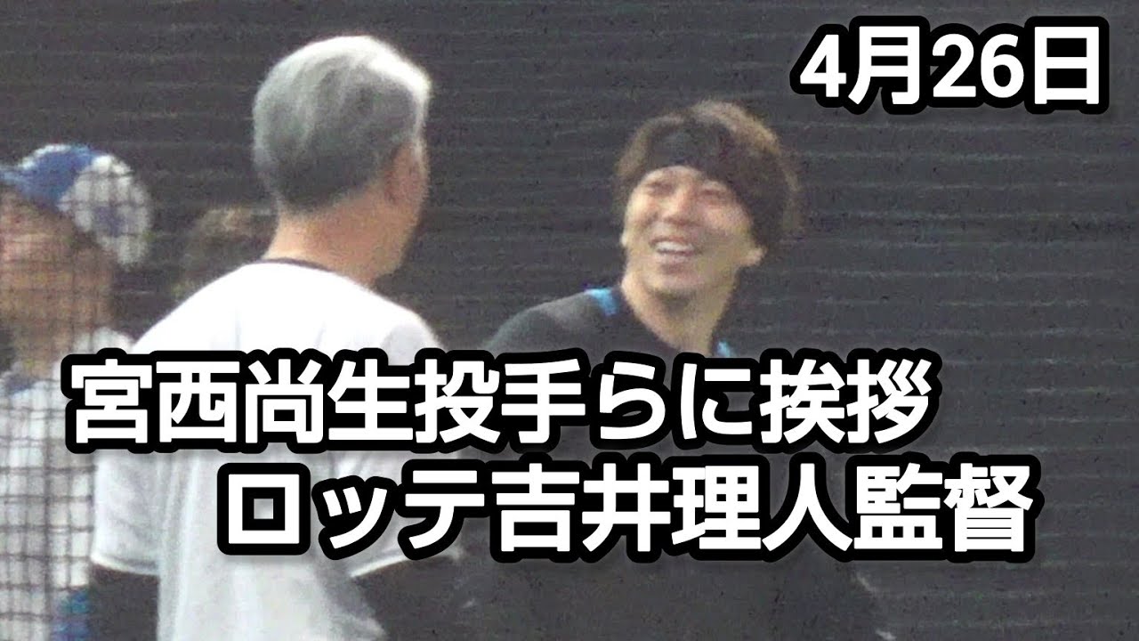 宮西尚生投手らに挨拶するロッテ吉井理人監督、建山義紀コーチ2025.4.26