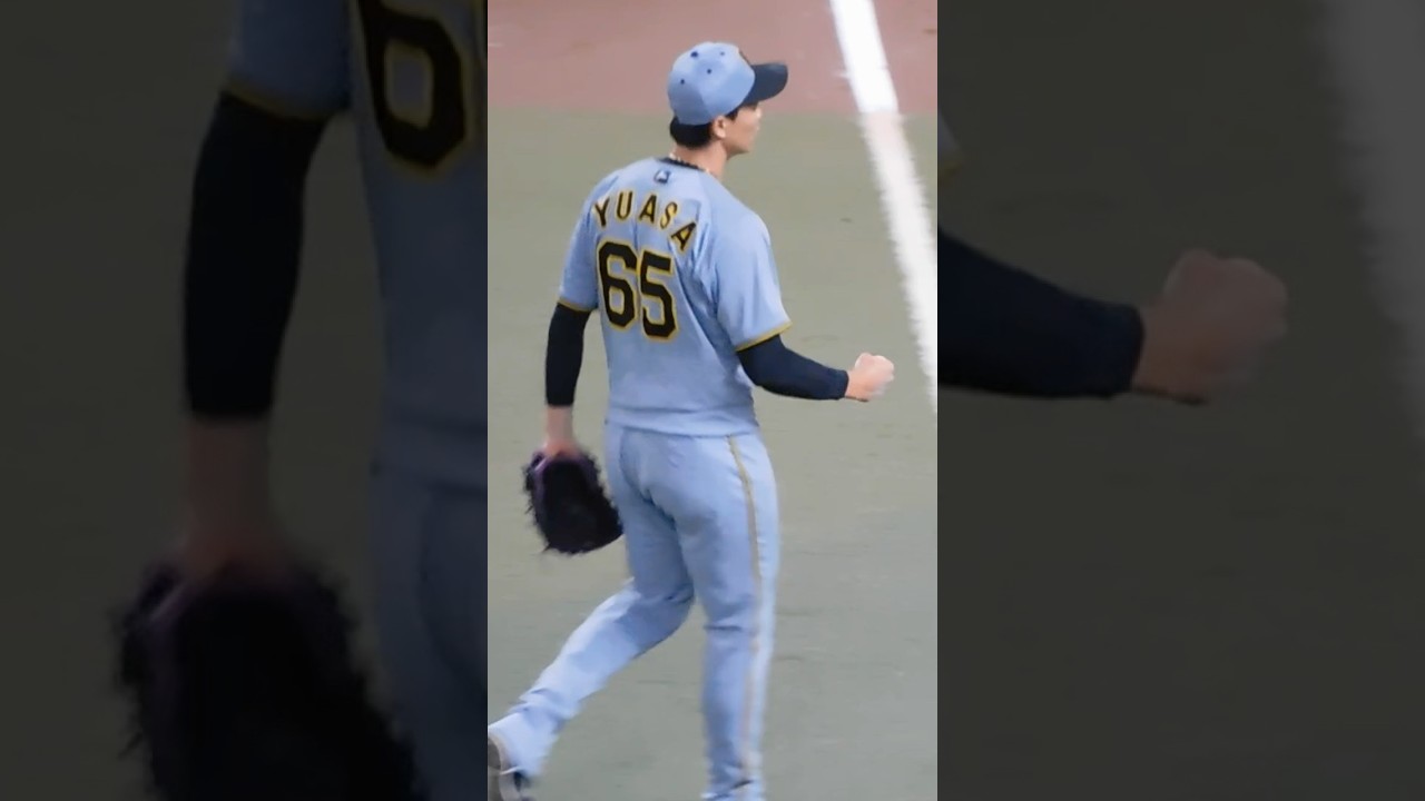 復帰登板を無失点で凌ぎガッツポーズでベンチに引き上げる湯浅京己
