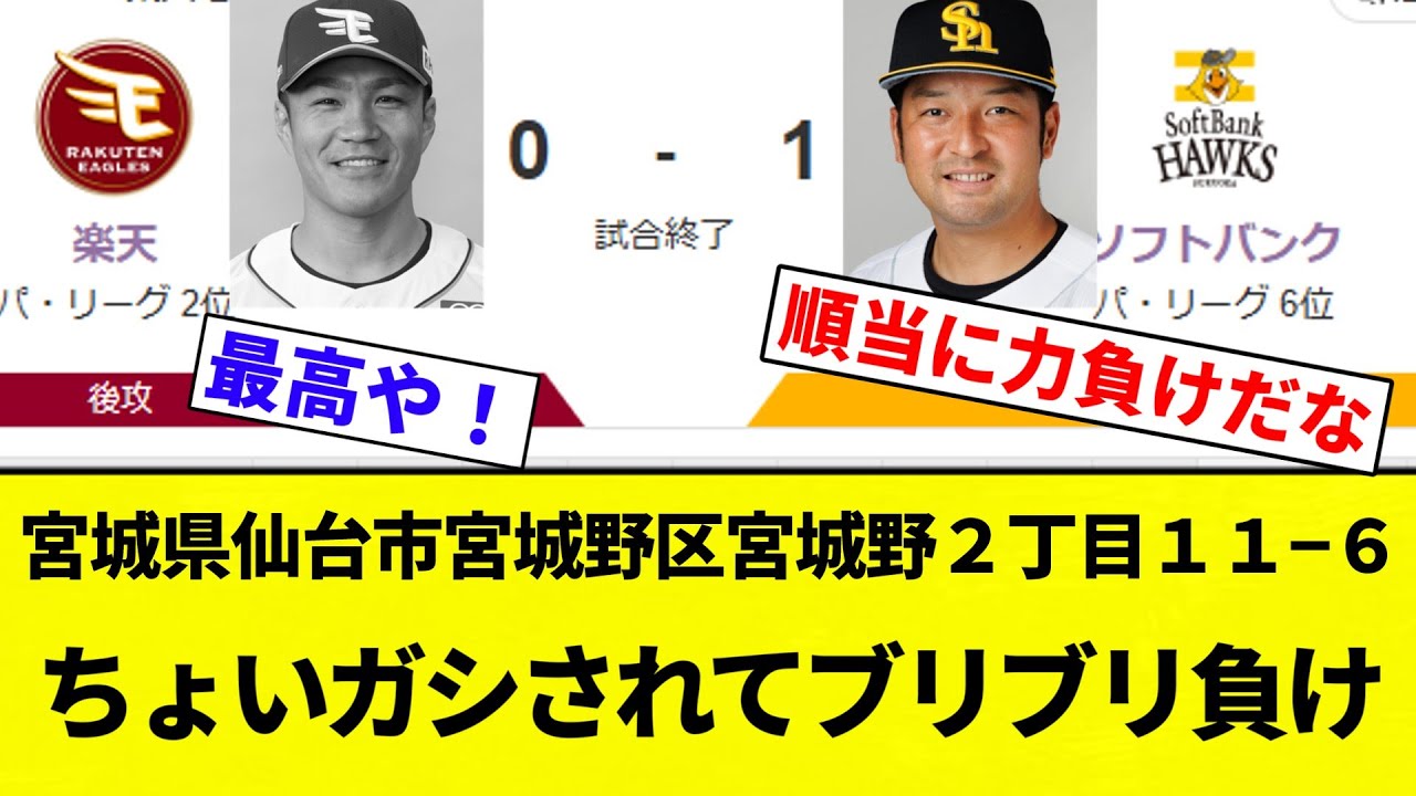 【貧打でガッシリ】宮城県仙台市宮城野区宮城野2丁目11−6 ちょいガシされてブリブリ負け【プロ野球反応集】【2chスレ】【なんG】