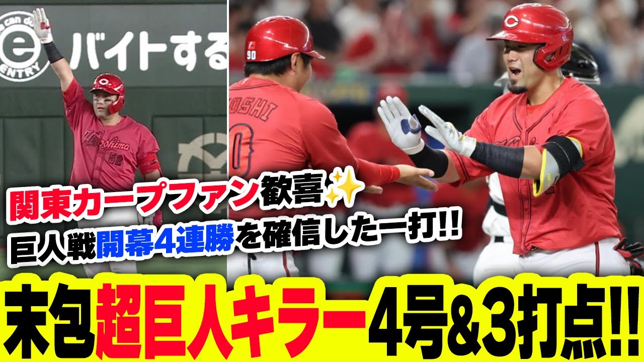 カープ末包『超巨人キラー』4号2ランホームラン&3打点で巨人戦開幕4連勝の快挙…のはずが小園エラーから栗林&中崎炎上で延長逆転サヨナラ負け