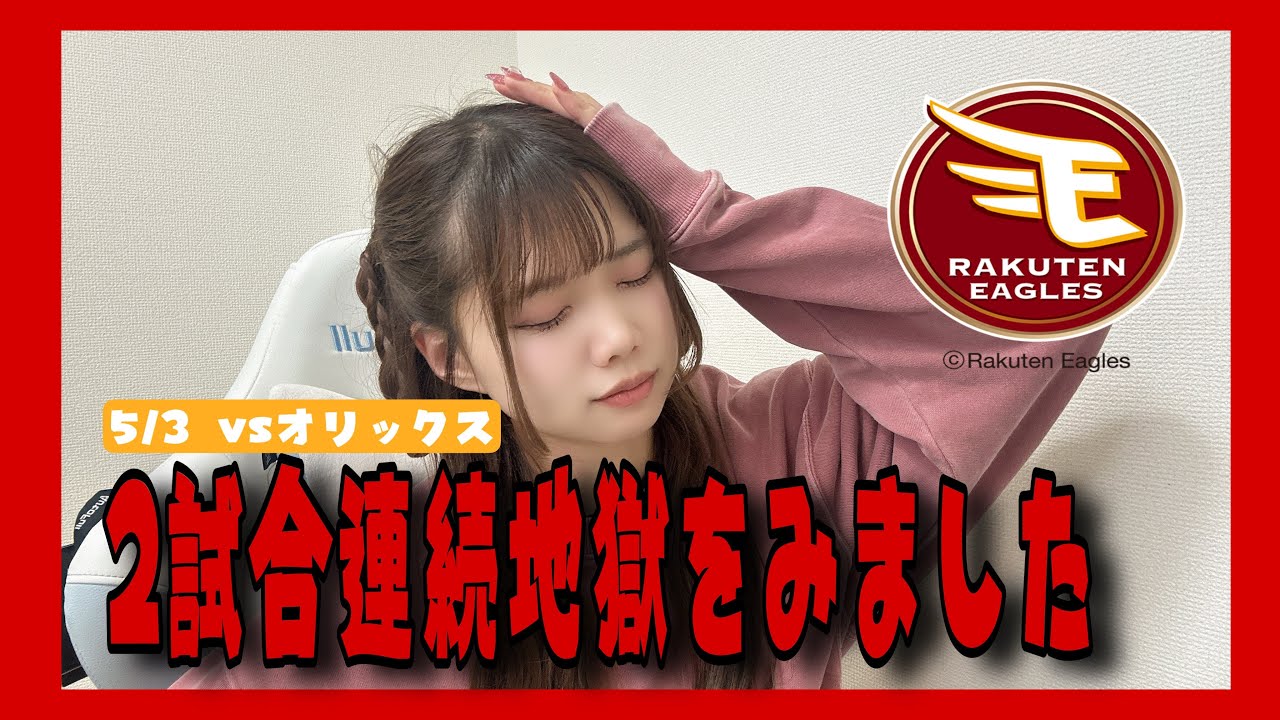立ち花のこたず。 え、今日マジでやばいね。私今日アイドル フェスがあって水戸に行ってたんですよ。 で、ライブをして水戸から帰ってくる途中 のあの特急電車でハイライトとか見てたん ですけどで、あの見逃し配信で全部見たん ですけどえ、めっちゃやばいですね。今日 なんかあのセー武戦、この前のもうなんか 地獄みたいな試合だなって思ってたんです けど、あの今日もなかなか8回と9回やば すぎるでね、あまりにももうびっくりした よ。ちょっとこれ今日何がやばいか どんどん説明していきたいと思います。 なんか今日はなんか誰かのミスとかじゃ ないもん。なんか全員やばい。シンプルに 全員やばいなと思いました。それでは行き ましょう。レッツゴー。はい、改めまして 5月3日、え、オリックス戦0対7でまほ 、ま、今4連敗中で先発の早川投手なん ですが5.2回112級、え、7アダ4脱 三振、え、4子2失点。ま、この2点の うち1本は、ま、ホームランだったんで、 ま、それはそれとして、えっと、今日の私 の早川投手の、えっと、東京未店の感想な んですけど、オリックス打線が、ま、初球 からどん打結構降ってきていて、積極的に こう早かを攻めているなというのがすごく 印象になりましたね。だから初球で 打ち上げてアウトになるっていうパターン も多いんだけれども5級から789くらい 粘られてのアンダとか三振とか結構玉かず 化稼石をされてるなっというのを感じまし た。だから相手の早川攻略のうちの1つ だったのかなっていう風にちょっと今日は 見てて思いましたね。って言うて結果とし て早い回でかず112級稼がれてしまって なんか交板させられたっていう感じの表現 が近いのかなと思いました。で、えっと 今日1番打者に弘岡選手を当てているん ですけど、過去2試合はオリックス麦谷 選手を1番バッターにしてたの。でも広岡 選手は対左打車に対して今3割超えって いうので結構好調なんですよ。だから あえて多分この早川投手に対して当ててき たなっていうのを感じますね。で、えっと 逆にもうそれこそ右谷選手は初めする左 バッターをもうこ今日はあんまりスタメン に入れてなくて右打車で結構固めた スタメンにしてきてくれたんですよ。だ もうオーダーからして早川を打ち崩そうっ ていうのがなんかオリックス打線から見え たなって思いましたね。先週の投球が すごく良かっただけに今日も別に めちゃめちゃ悪いってわけじゃないんだ けど、なんか先週のね11戦とかに比べる とね、ま、ちょっとかなって思うけど、 まあ東京内容としては、ま、ちょっと フォアボール多いけど全然悪くないなって いう風には思いました。で、ちょっと4回 裏のチャンスメイクの場面、あと1回かね 、3回まではほとんどね、楽天も手をも足 も出ていなかったので初めてのチャンスが 4回になりますね。小方選手とセーフティ バンド成功からの盗塁成功。今年結構その 小方選手だけじゃなくて小選手だったりと かもあの足を使った作戦が結構こうそうし てるなと思って今日もそのうちのパターン の1つだったなと思います。で、朝選手が フォアボールでワンアウト12塁で、え、 その後フラゴのセンターフライそして村林 選手の空振り三振。ああ、ここせっかくね 、ワンナウト1塗る作れたからね、点が 取れたら良かったかなと思いました。ま、 惜しいなっていう感じですね。はい。あ、 ちなみに7回までは結構いい試合してるん ですよ、今日。8回と9回が地獄すぎる だけで別に悪くないです、7回までは。 はい。えっと、5回の持ってく選手が4球 目低めに入ったカットをそのホームランで レフトスタンドに叩き込む。なんか、えっ と、今年の早川選手は6試合中5、5試合 避弾してるっぽくて、なんかね、1発に 泣くパターンが結構今年は多いなって感じ で、ま、もうホームランはね、仕方がない です。ク林選手がね、お子さんも生まれた ということでおめでとうございます。はい 。5回の裏、えっと、堀選手の6球目の フォークを止らえた、えっと、センター前 の2ベースヒット。これ良かったですね。 で、この後中島選手がね、あの、高めの玉 に手出せて、ま、フライになっちゃうん ですけど、当たりは良かったですよ。 当たりはかなり良かったんですけど、これ がね、ヒットになってればタイムリーだっ たなっていう、ま、ちょっと惜しかった なっていう感じですね。はい。で、え、7 回裏、7回裏もね、いいチャンスだったん ですよ。ま、ここはなんかそのめっちゃ 褒めたいとではないんだけど、ま、 ちょっと話したいところで村林選手、村山 選手、連続アンダが出て2アウト12塁が できました。で、ここで代打でね、糸選手 が出てくるんですけど、魂の10級勝負。 これ私ノーカットで見ました。皆さんも ノーカットで是非見てください。カウント 2までは、ま、普通のいつも通りって感じ なんですけど、こっから5級連続ファール であの、糸選手が粘るんですよ。めっちゃ 見てて、もう結果分かっ