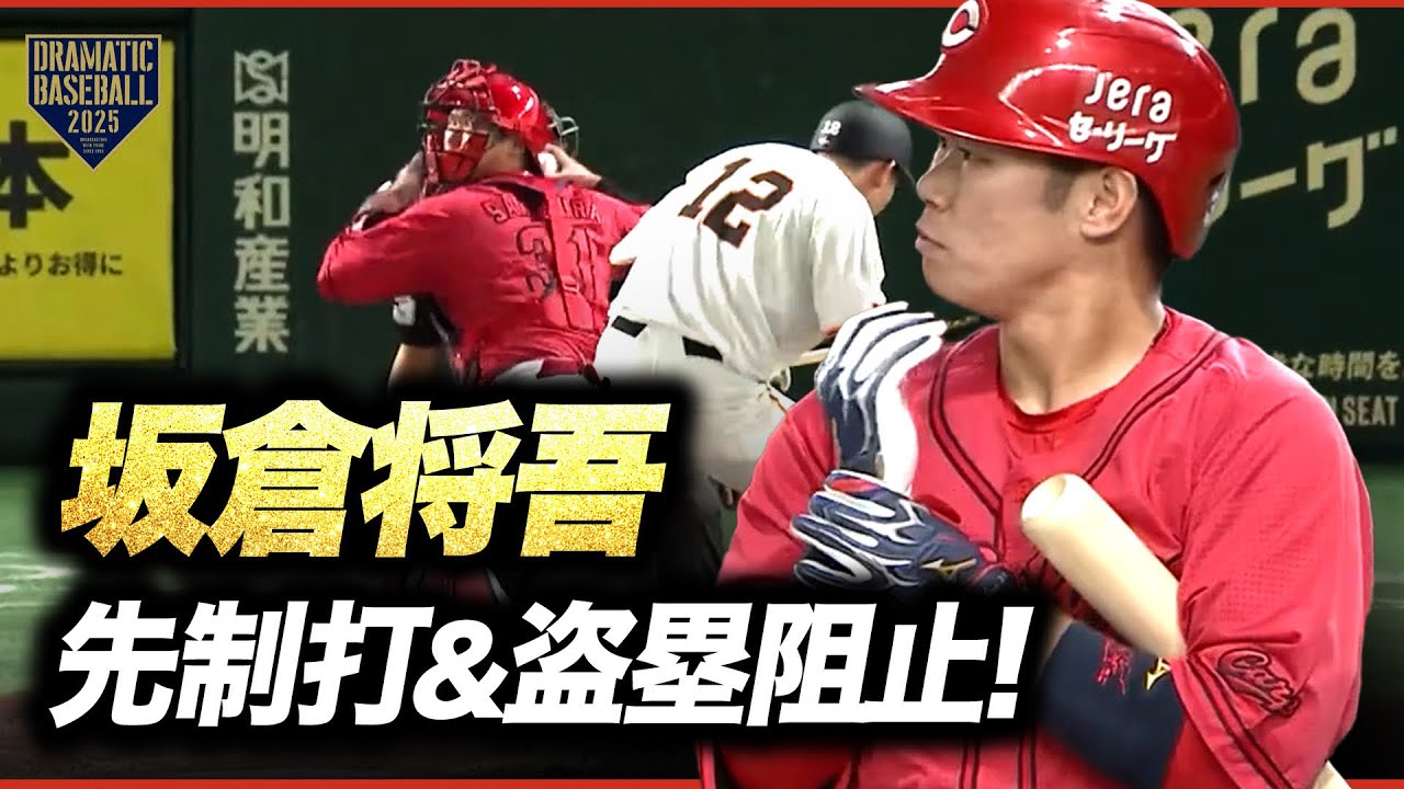 この坂倉に対しては急速も4647 [音楽] [拍手] [音楽] と出てますし。あのリングストレート打った。センターの前に落ちました。 2塁ランナー3塁を回った。1 塁ランナーも3 塁へ。今ホームイン。カープが先制。スタメン復帰。今シーズン初打点の坂倉先制タイムリーです。 [拍手] ポイントなんでね、ピッチャーはやっぱりストライクゾーンどうしてもこう投げたい 気持ちにはなるんですね。え、 はい。ま、そのボールがやっぱ2 つぐらいちょっと高かったっていうとこでしょうね。 うん。 やはりあの高さになると坂は逃さないと。 はい。 [音楽] インコース12 塁間破っていきました。1 塁ランナーセカンドストップ。 [音楽] カープは4 イニング連続で得点にランナーを進めています。ヒ ットですね。 [音楽] [拍手] [拍手] そうなんですよね。だからここに勝負になるので少しこうち組入るとこういうの菊サード小園ショート矢野という内ヤ人です。キャベッチスタート切った。空振り三振。セカンドの早球タッチはアウトになりました。三振ゲツで 3 アウト。ここはドミンゲス。そして佐倉のバッテリーがチャンスの目を積みました。 [拍手] またスタート切ったボールになってタッチはアウトになりました。今日坂から 2 つ目の盗塁阻止ドミンゲスも4 回を投げ切りました。そのドミンゲスからの攻撃ですがしてくれます。 [音楽] はたみ長ありがとうございます。 [音楽] [拍手] [音楽]