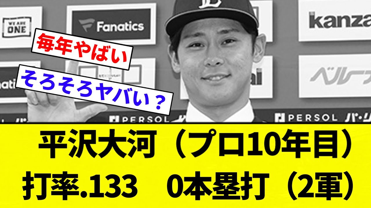 【やばいやんけ】平沢大河(プロ10年目) 打率.133 0本塁打(2軍)【プロ野球反応集】【2chスレ】【なんG】
