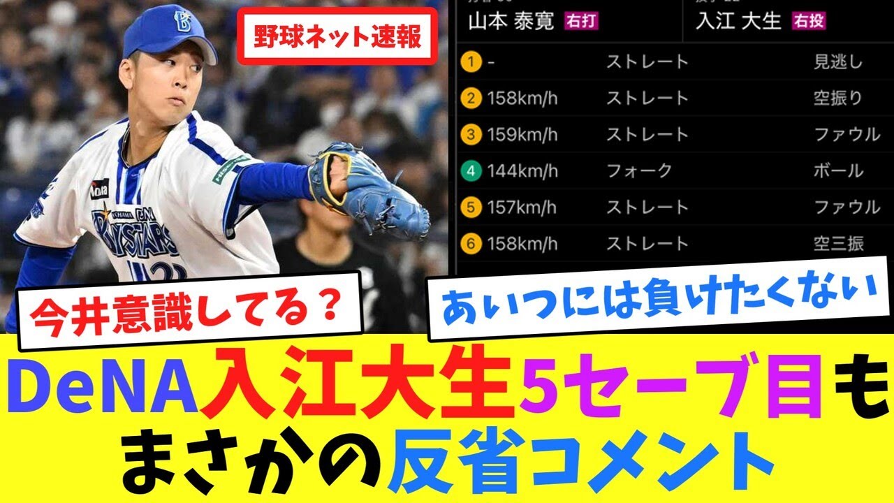 DeNA入江大生5セーブ目もまさかの反省コメント【ネット反応集】