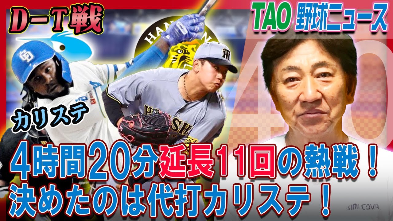 [音楽] チャンネル皆さんこんばんは。え、今日も昨日に引き続きましてバンテリンドームで行われました中日ラゴンズ対阪神タイガースの 1 戦をお伝えします。え、昨日はですね、枠と最近の投げ合いということで、ま、タイガースの方が少し有利かなと思っていたんですけれども、あ、そういきませんでしたね。 え、4対1でドラゴンズが勝ったという ゲームになりました。そして今日のゲーム はですね、え、ドラゴンズの先発は大野、 え、2ゲーム投げてレ勝いっぱいです けれども、防御率1.64。いい内容で来 てますね。え、タイガースはモン別4 ゲーム投げて一勝1杯、え、2.08と いうピッチャーですね。別の場合はですね 、まだ6回を投げ切ったことがないって いうね、え、ところで、ま、6回がどうか なっていうところだったんですが、今日も その6回にちょっと問題がありましたね。 はい。え、そのゲームをちょっと振り返っ ていきますが、まずホワイトボードをご覧 いただきましょう。こういうような流れに なっております 。はい。こういう風に、え、なりました。 1点ずつまず初回に取って、え、3回の裏 にドラゴンズが1点リードして、そして6 回にですね、タイガースが3点取って4対 2にしたんですよね。まあ、タイガースの リリーフ人ずっとこう本当に失展してない 。そういうことから考えるとですね、もう この6回の3点、これでタイガスすんなり 行くのかなと思ったんですが、そうは行き ませんでしたね。え、6回の裏に2点 追いつかれて結局延長11回の裏に、え、 ドラゴンズが1点取ってドラゴンズ2連勝 、タイガースが連敗。これで、え、3連敗 ということになりましたね。えー、この ゲームを振り返っていきましょう。はい。 え、まず初回のタイガースですけれども、 ワンアウトから中野がですね、左中間に3 塁打。そして3番森下初球の変化球。これ をですね、え、センター方向へ落つけまし たね。これで1点取りました。先制は タイガスということになりましたけれども すぐに追いつかれます。えー、門別の方も ですね、先頭打車岡林に宇中間に3塁ダー を打たれて、え、ワンアウト53番の上林 にセンター前のヒット。これで1対1の 同点ということになりました。そして、え 、3回の裏、え、先頭打車8番の木下イン コース高めの真っすぐでした。これを レフトオーバーにソロホームラン、え、2 対1ドラゴンズがここで1点リードという 形になりました。の方はですね、2回、3 回、4回、5回、この4イニングをですね 、3者凡体ずっと続けておりまして、6回 の表、え、まだ玉数も709超えたところ どうてことなかったんですが、え、先頭の 近本にショートへのナイアンダを打たれて 、え、2番中野を迎えて2ボールになった ところ、ここで何かアクシデントがあり ましたね。急遽2番手のソブエに交代と いうことになりました。まあ、そエそんな に準備してなかったのかもしれません けれども、中野に対してはフォアボール ですね。これでノーアウト12塁。そして 、え、森下が先体ヒットしてノーアウト 満塁ともうあっという間にですね、大きな ピンチタイガースからするとですね、 大きなチャンスをもらいました。そして4 番の佐藤寺明。こういう時の佐藤はですね 、どちらかいうとリすぎる。そういう嫌い があったんですが、この打席は 素晴らしかったですね。外のスライダーを 軽した感じでしたね。レフト方向に、え、 タイムリヒット。こういうスイングが でき出したらもういくらでも打点が増える んではないかな。そういうような気にさせ られた。えー、タイムリーでしたね。1点 取ってまだノーアウト満塁。そして5番の 大山と2ボールワンストライクから スライダー。大体引っかけてしまいますね 。大山もうちょっとセンター方向の意識が あれば、え、こういうチャンスでも ガンガン行くと思うんですが、ここも 引っかけてしまいました。え、543の ダブルプレー。ま、1点は入りました けれども2アウトということになりました ね。ま、これで終わりかなと思ったところ に6番前側インハイのまっすぐ。案外 難しいボールだったと思いますけれども、 きっちり振り抜いてライト戦にヒットして 、え、この回3点目、え、トータル4点目 が入った。この1点は大きいなと思いまし たね。これまでのタイガースの戦いから するとですね、この6回の時点で相手 チームに2点差をつけた。ま、これは すんなり勝たないといけないゲームだなと いう風に僕は思っておりましたけれども、 そうはいきませんでしたね。6回の裏、え 、板山、上林、え、2人三振打ち取った後 の4番ボスラーですね。え、ボスラーに ワンワンからですね、インサイド要求。 これがですね、デッドボールです。右手の この辺に当たりましたね。え、これでは2 アウトで1塁。やっぱりこう大きいのを 打たれちゃいけないっていう気持ちが働く んでしょうかね。もうより際どいとこに 投げようっていうようなそういうような 気持ちにな