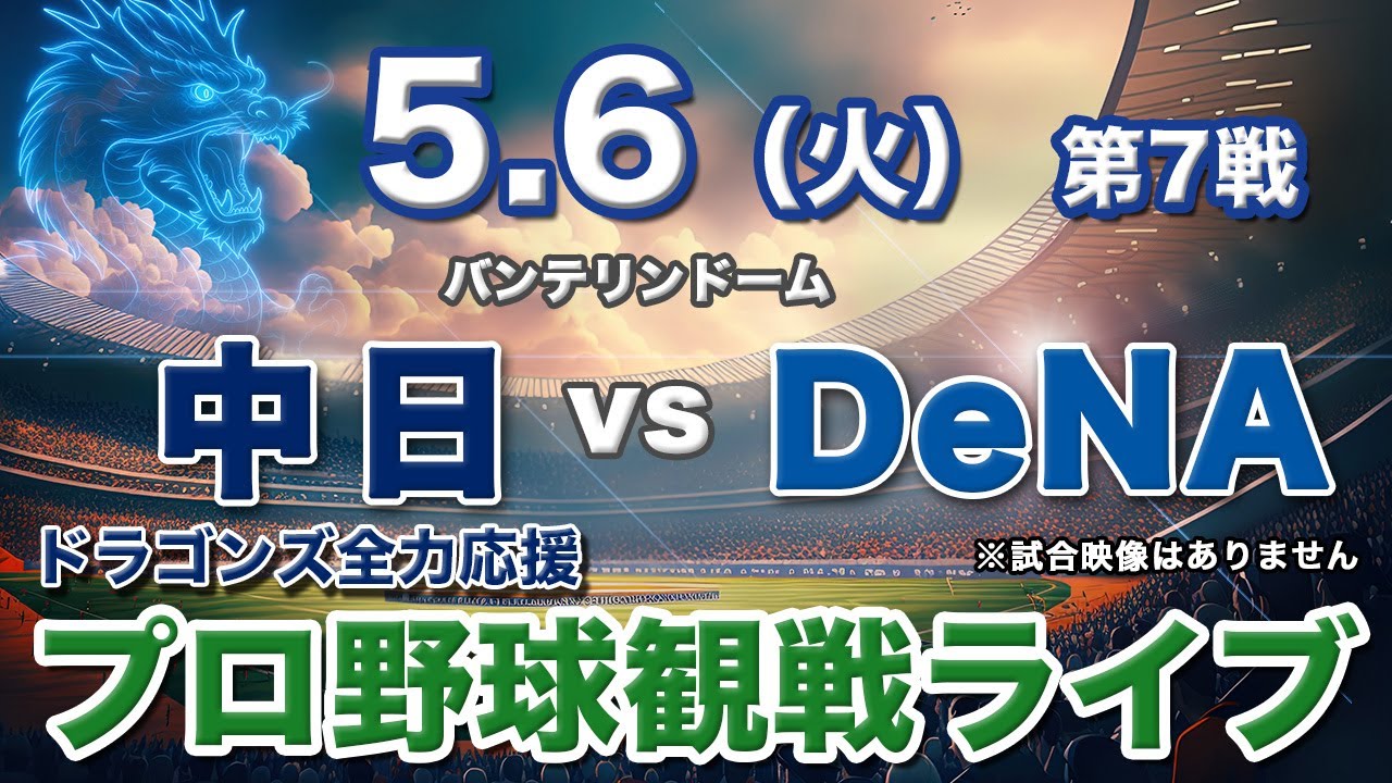5/6(火)【プロ野球観戦ライブ配信】中日ドラゴンズvs横浜DeNAベイスターズ 第7戦 バンテリンドーム【ラジオ風生配信】 明るく楽しく元気よく!をモットーにドラゴンズを応援&実況! 一緒に楽しくプロ野球を観戦しましょう。 他球団ファンも大歓迎! ライブ配信初心者ですので、温かい目でご覧ください。 地上波放送またはネット放送を見ながらの配信となります。 CMでイニング頭が実況できない場合があります。 またタイムラグがありますので、ご了承の上ご視聴ください。 #プロ野球Chunichi Dragonsプロ野球ライブヤクルトライブ配信中日中日ドラゴンズ生中継 NPBHUB.COM | The Fanbase of Nippon Baseball & Nippon Professional Baseball