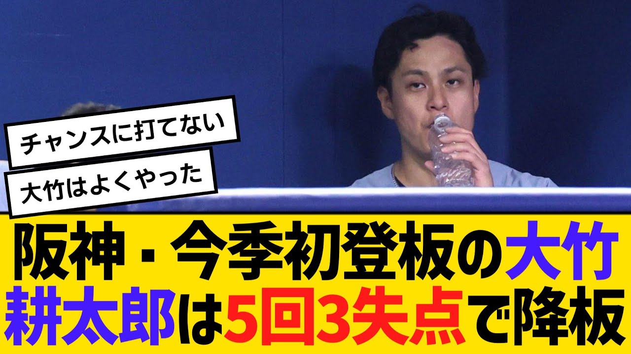 阪神・今季初登板の大竹耕太郎は5回3失点で降板 【ネットの反応】【反応集】