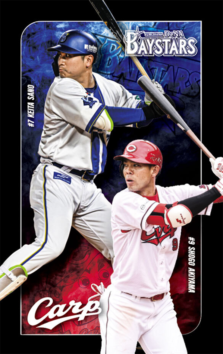 横浜DeNAベイスターズ#7佐野恵太選手と広島東洋カープ#9秋山翔吾選手が一枚のデザインとなったカード!