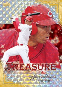 選手の写真と背景色などを変えたバリエーション、レギュラーと写真は同じも新たな背景デザインで銀紙や金紙使用のレギュラーパラレルがあります。 直筆サインカードも通常版に加え、コンボ版、クロス版、シルバー版、1of1、ルーキー版が登場。