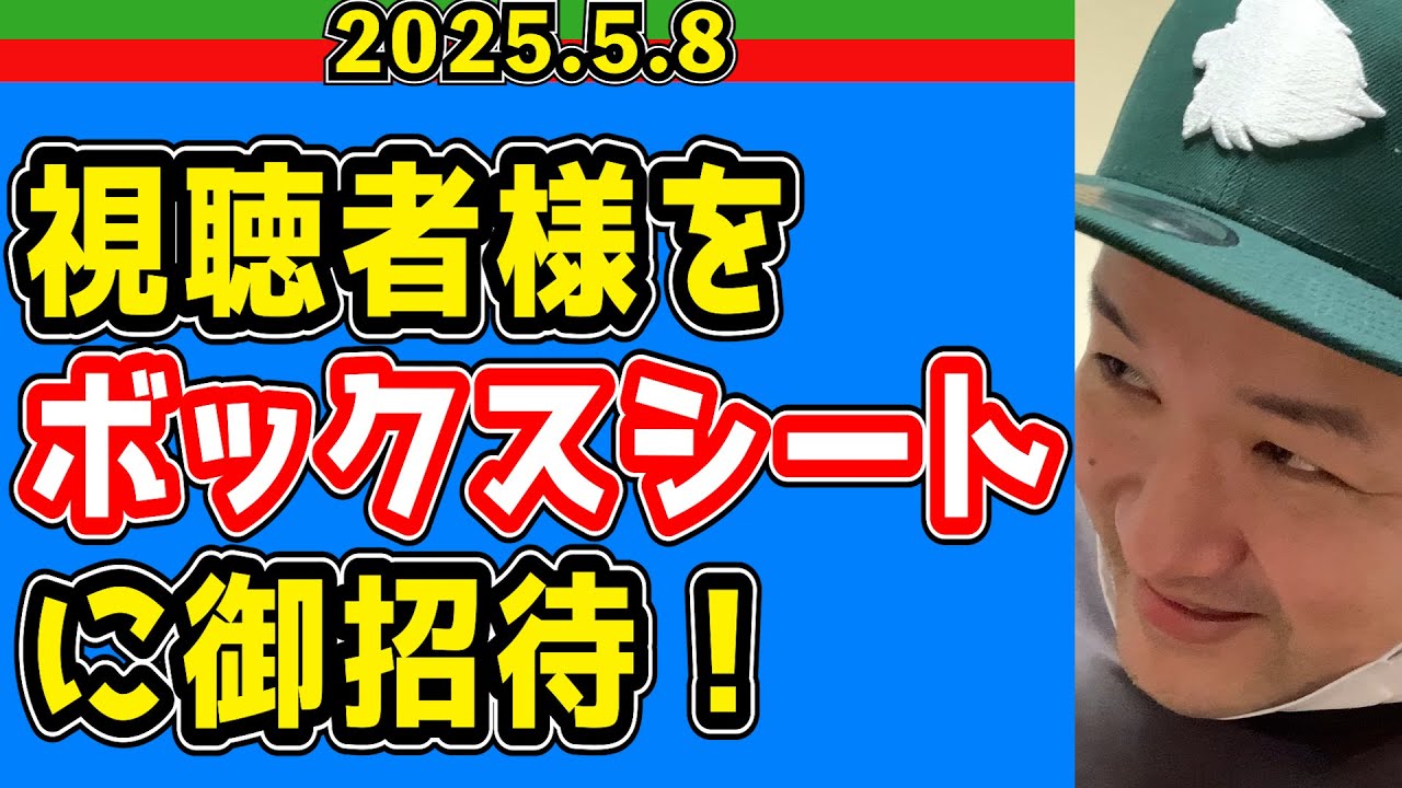 どうもおマットさんでした。平ち郎です。今日は、え、ともさんのお作に来ております。 おわさんでした。 おわさんでした。え、ちょっとね、急にあの動画回してて、今日は僕死体でね、とさんちにもうお邪魔してちょっと動画の方撮らせてくださいとお願いした次第なんですけども、とさん、とりあえずあの、こちらちょっと収めていただければなと思って。うん。 [音楽] ちょっとつまらないつまらないものですけども、え、ちょっとこの方を一旦収納めていただいつなんか父さん食べてるイメージがあったな。プ ボリボリ行ってですね。ま、こちらのコーラなんかはですね。 大だな。はい。 どうぞ食べてください。いただきます。 はい。 気が効くね。 いえいや、もう、もうえ、さすがさすが昨日のね [音楽] はい。643、643いいね。 643 見ていただきましたか?山川のダブルプレイね。はい。はい。はい。 気持ちよかったですね。はい。 あれ、あの、斬新なライブ配信してんなと思って見てたけどな [音楽] んですか?斬新なライブ。 これ何やりましたっけ?今日 本人にいないのにチャット。 あ、そうだそうだそうそうそうそうそう。あの、ちょうど勤だったんで すげえ斬新だ。 斬新ですよね。あ、この手があったかと思いました僕は。 いや、あれはすごいね。 しかもやらずに終わるっていう ーで。クーニング。はい。 まあまあそうですね。もう昨日はご機嫌よく 7対1 で勝たせていただきましたし。そうですね。 今年はやっぱ去年のライオンズに比べればだいぶ強いライオンズなじゃないかなと思いますし。 でね、ま、そろそろですけども、ま、とさんにこれお願いというか、ボックスシートをぼちぼち感なんていかがでしょうかと思いまして。そんな暇ないな。忙しくてな。 マジっすか? 全然忙しくて。 はい。行っちゃうしかないな。 おほ。乗りだ。乗りだ。 [音楽] [音楽] あとは日程ですよね。日程とま、あの金額の方がいっぱちょっとかかるんですけども、え、日程今月けま急結構急なんです。 6 月って結構まだ分からないですもんね。先が もう今月の方がいいよ。 今月の方がいい。今月の方がいいと。ナド 29 なんてどうでしょう?さん29。29 の木曜日は大さすさす。 [音楽] じゃあですね、この日ちょっともうボックスシートをちょっとね、え、今もうこの動画回ってる状態であの撮らさせていただきました。よっしゃ、取らせていただきました。え、ちゃんとね、あの、レッドパーキングもコミで。 そうだね。 はい。こちら。あ、だめだ。これ見してだめだな。 これワコ通り読み取っちゃうからちゃんと 29 日ね、今取らせていただきました。はい。 というわけでこれね、ま、5月の29、 ま、9ではありますけども、急だね。 はい。ま、6 人席なんで僕とさん覗いた4 名、え、抽選でご招待という形でよろしいでしょうか?お金取らなくていいですかね? お金はいらない。 お金はいらないと小屋でただきましたので、じゃあ今年もあのボックスシート感染シートツアーやらせていただきます。イエーイ。 というわけでね、SNSのね、あのイン スタもしくはXのね、え、DMで、え、私 僕参加したいよと、え、一言をいただけれ ば抽選の方させていただきますので、 ちなみに、え、シミ切りは今月の11日 23時59分までとさせていただきます。 ま、12日、12日前までにDMを送って ねということですね。そこでまたあの抽選 の方、え、させていただくのではい、 よろしくお願いいたします。あと集合時間 17時にですかね。集合時間17時に、え 、来れる方とさせていただきます。 ベルンダドーム前に17時集合できる方で 、え、お願いいたします。え、もう1 度、え、日が、え、5月29日17 時に、え、ベルーナドームに来れる方応募の方お待ちしておりますので、え、よろしくお願いいたします。て感じでよろしいでしょうか?とさん、すいません。急にあれ、無茶ぶりで、無茶無りで [音楽] 急がね、はい。しかももう取ったしね。も 取ったし、もう動画も撮ったし、チケットも撮ったし。うん。うん。うん。うん。うん。 では、そもすいません。よろしくお願いいたします。お付き合いの方よろしくお願いします。 よろしくいですから。 [音楽] そうですね。はい、よろしくお願いします。ま、抽選の様子はまた、ま、動画にするか、え、生配信にするかちょっと考えておきますので、え、 DM の方、え、インスタX でお待ちしております。では、え、この動画はこの辺で示させていただきます。さよならライオン [音楽] ガ。ありがとうございました。悪 [音楽] はい。 え、というわけで、今ちょっと帰ろうとしたんですけども、ともさんが、え、ちょっと話がまだあるというか 忘れてた。 忘れてたことがあるということではい。 大事なこと言うの忘れてた。 はい。何でしょう?何でしょう? いや、Tシャツの件だね。はい。作って、 もう1 個ちょっと現をね、作り直したなっていう。 [音楽] はい。白バージョンの ああ、あのキャラクターをね