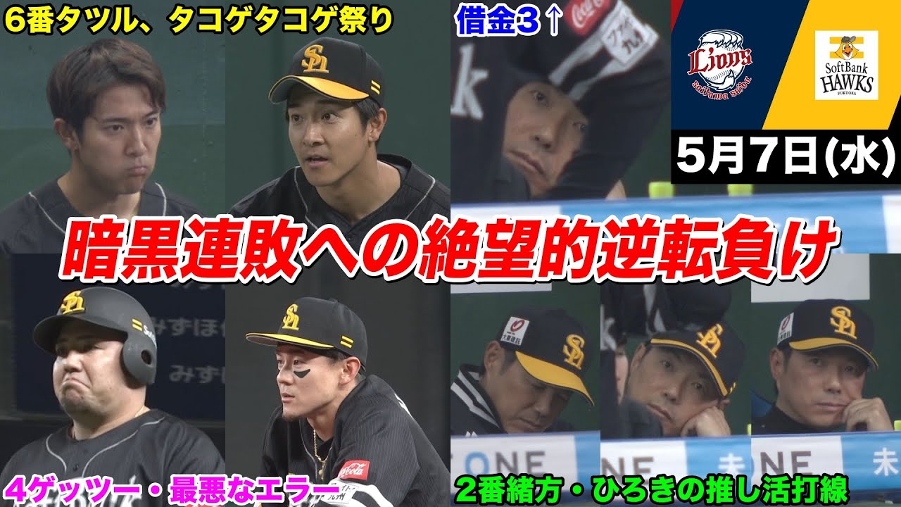 今日のタツル、まさかの6番降格でタコゲ祭り…ひろきの推し活打線、エラー、ゲッツー地獄の逆転負けでまた暗黒連敗への扉が開きそうWWWWWWWWWWW【2025年5月7日 埼玉西武vs福岡ソフトバンク】