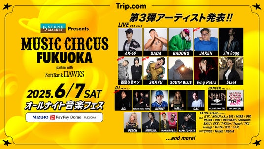 2025年6月7日(土) PayPay DomeにてSTONE MARKET Presents MUSIC CIRCUS FUKUOKA partner with SoftBank HAWKSが開催されます。