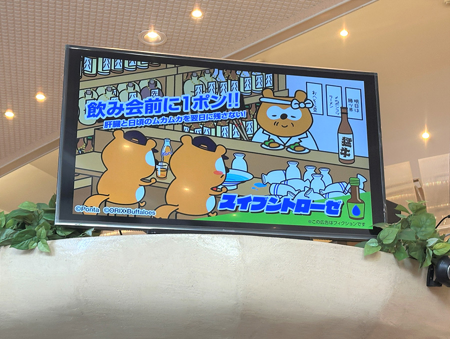 写真:店内のモニターには、バファ☆ポンのSNS投稿のイラストなどが映し出されます
