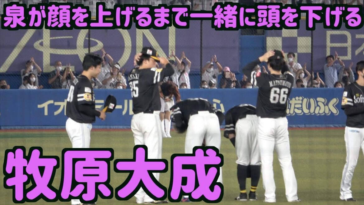 最終戦の挨拶で泉圭輔が顔を上げるまで一緒に頭を下げ続ける牧原大成【ホークス】