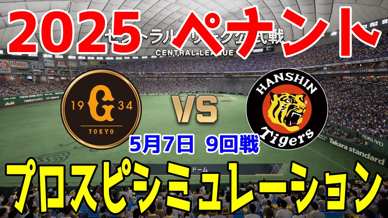【2025年ペナント/プロスピ2025】読売ジャイアンツ 対 阪神タイガース プロスピシミュレーション 2025年5月7日 9回戦【プロ野球スピリッツ2024-2025】