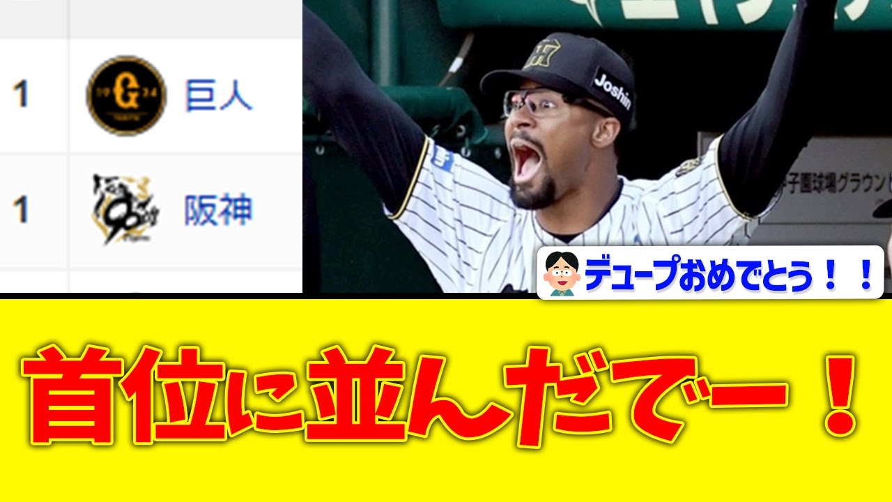 阪神連勝で同立周囲。 阪神はヤクルト271で解消し2 連勝に破れた巨人と並び4月に19 日以来の周囲にった。先発したプランティは 6回4 アンダ無失点の後頭で来日初勝利。9 回には1 日に最格した区動画に三振で試合を閉めた。 勝ったで。素晴らしい試合でした。 ジュプ初勝利おめ。ジュプおめでとう。 ジュプちゃんおめでとうやで。初勝利初ヒット。 [音楽] ジュプ当たりやろ。 ヒロインはジュプやろね。 勝ちついてほんま良かった。何勝もしておかしくなかったからな。内容は [音楽] やったでく藤終わり渡で駆動せやかて駆動映画な。駆動は合格や。 [音楽] 2日連続パお休み最高や。 ようやくホームの価値数が伸びてきたな。終わってみたら全く危なげない試合やった。 今日のヒロインは佐藤とジュプランティエかな。 バンドの試合が夢みたいやな。 そんな試合なかったで。 あ。