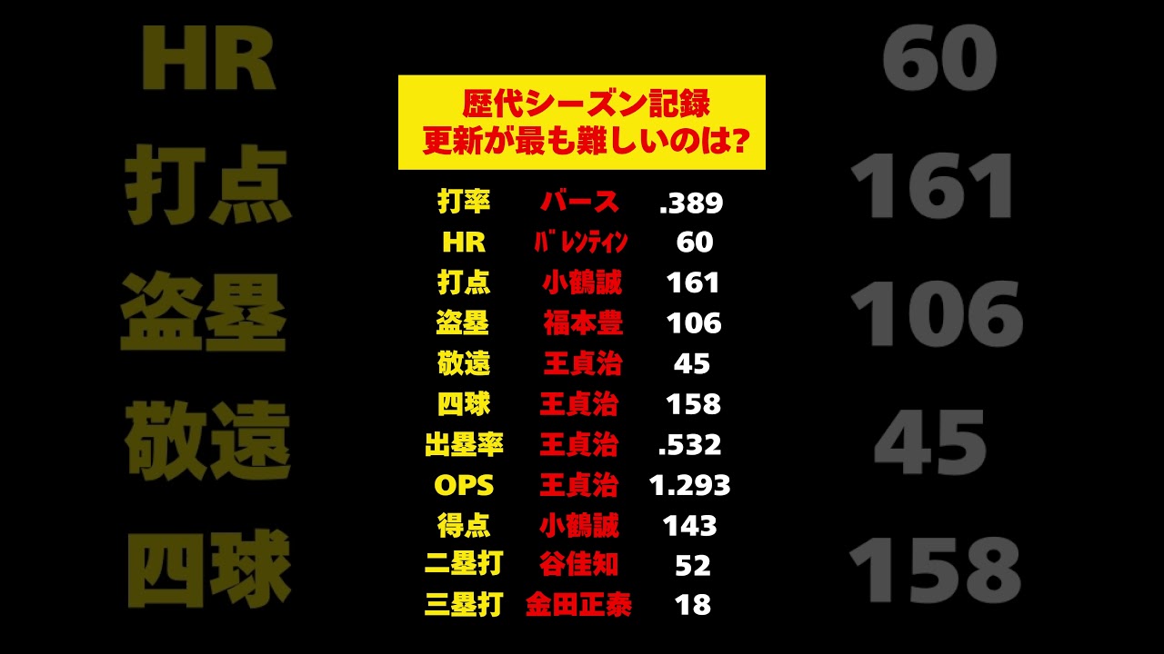 最も更新が難しいプロ野球のシーズン記録はどれ? 最も更新が難しいプロ野球のシーズン記録はどれ? #プロ野球 #王貞治 楽曲提供 株式会社 光サプライズ baseballBaseball newsベースボールやきゅう野球野球ボール NPBHUB.COM | The Fanbase of Nippon Baseball & Nippon Professional Baseball