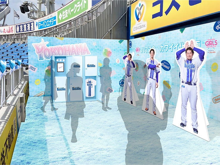 レフト側にはファン投票企画にて「王道カワイイ部門」「大人カワイイ部門」「ギャップカワイイ部門」「あざとカワイイ部門」でグランプリに輝いた中川颯選手、宮﨑敏郎選手、戸柱恭孝選手の等身大フォトパネルが登場!