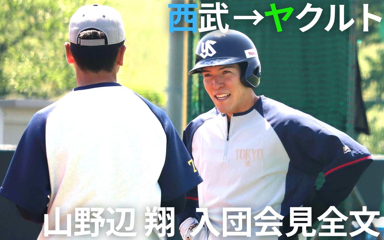 西武からトレードでヤクルトに移籍した山野辺翔内野手(30)が5月3日、埼玉・戸田球場で入団会見に臨みました。内外野を守れるユーティリティープレーヤーの新天地にかける意気込みを、全文でお届けします。