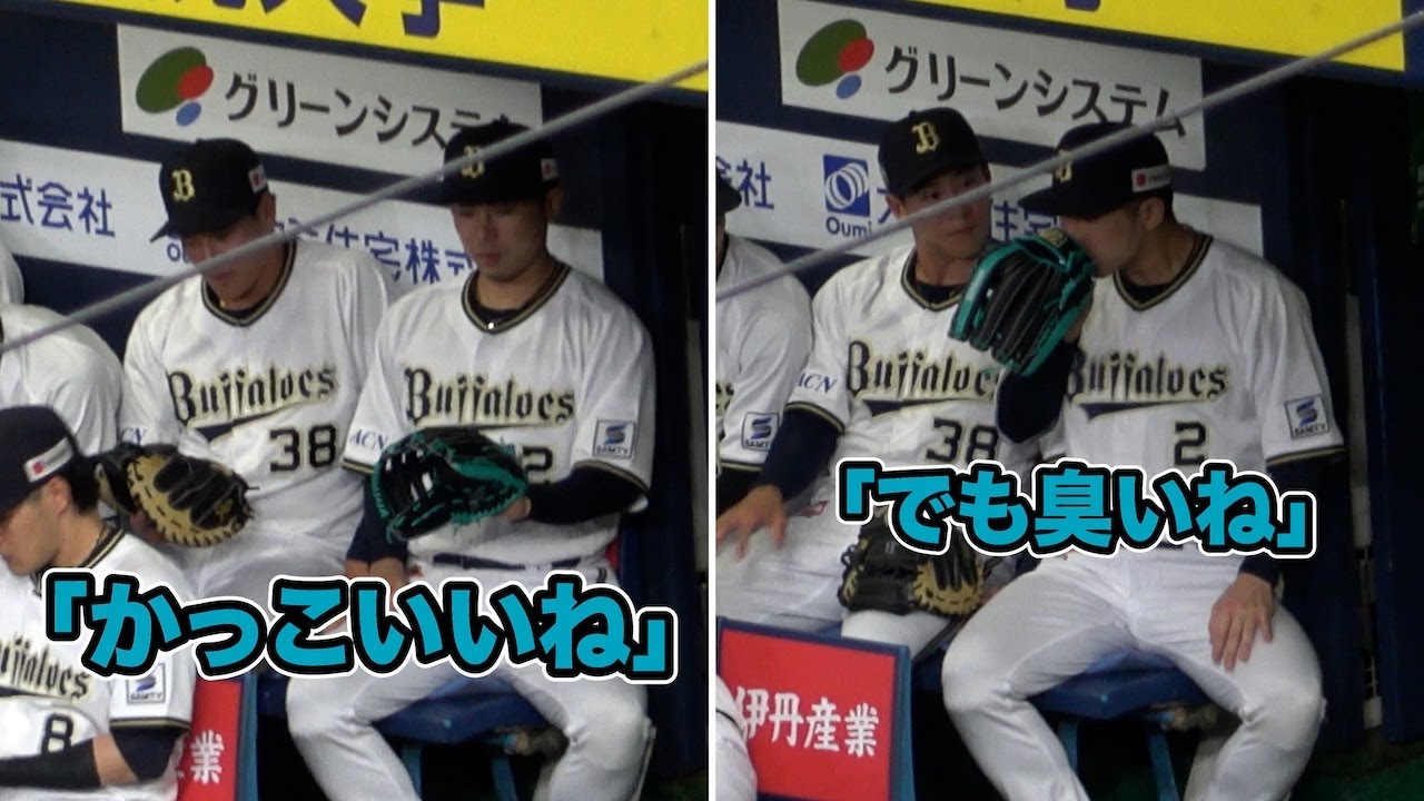 来田の新しいグローブの感触を確かめる若月健矢 2025年5月10日 オリックスvsソフトバンク 京セラドーム #若月健矢 #来田涼斗 #元謙太 #オリックスバファローズ ORIX Buffaloesオリックス・バファローズ若月健矢 NPBHUB.COM | The Fanbase of Nippon Baseball & Nippon Professional Baseball