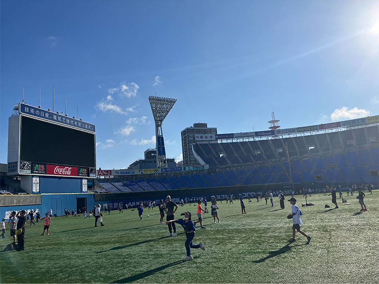 DREAM GATE CATCHBALLでは、横浜DeNAベイスターズの選手たちが日々熱い戦いを繰り広げる横浜スタジアムのグラウンドに立ち、キャッチボールを楽しむことができます。