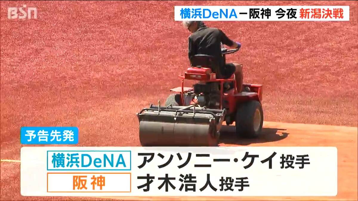 いよいよ今夜、ハードオフエコスタジアムでプロ野球セ・リーグ横浜DeNA対阪神の公式戦が行われます。決戦を前に球場では着々と準備が進められています。