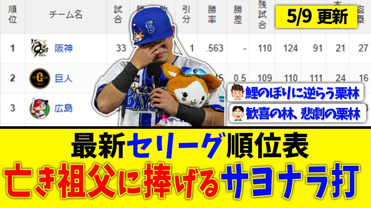 【5月9日】最新セリーグ順位表 ~亡き祖父に捧げるサヨナラ打~