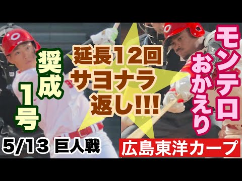 【広島東洋カープ】5/13 巨人戦 復帰したモンテロの一打で延長12回サヨナラ勝ち!!! 岡本が嬉しいプロ初勝利! 【エレフリス・モンテロ】【秋山翔吾】【岡本駿】【森翔平】【新井貴浩】【カープ】