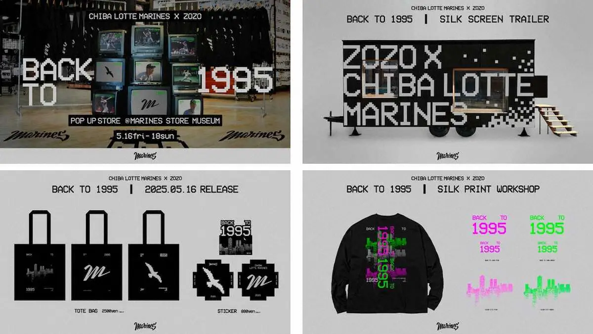 イベントでは、ファンから“グレーユニ”と親しまれた1995年のビジターユニホームを現代的にアレンジした「NEO CLASSIC EDITION」のユニホームにインスパイアされたドットグラフィックやピクセルアートなど、初期のインターネットを彷彿とさせるデザインをマリーンズストアミュージアム店内の装飾に取り入れ、95年当時のデジタル文化と野球の歴史が交差するノスタルジックな空間を演出する。また、マリーンズストアミュージアム店前には特設トレーラーハウスが設置され、マリーンズ×ZOZOコラボアイテム「BACK TO 1995」のロゴや90年代風グラフィックのデザインをシルクスクリーンプリントし、自分だけの特別なカスタマイズが楽しめる有料サービスを実施する。