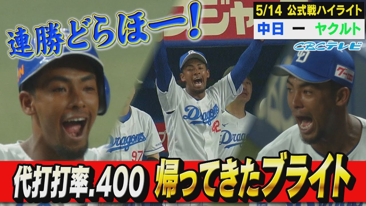 連勝どらほー!帰ってきたブライト、タイムリーで貴重な追加点!涌井2勝目!上林絶好調!【5月14日 公式戦 中日 vs ヤクルト ハイライト】