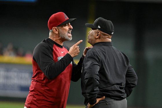 ダイヤモンドバックスのトレイ・ロブロ監督が14日(日本時間15日)、敵地でのジャイアンツ戦で判定に激怒し、退場処分となった。怒りの収まらぬロブロ監督は、審判4人に対して“退場宣告”をやり返す珍場面もあった。