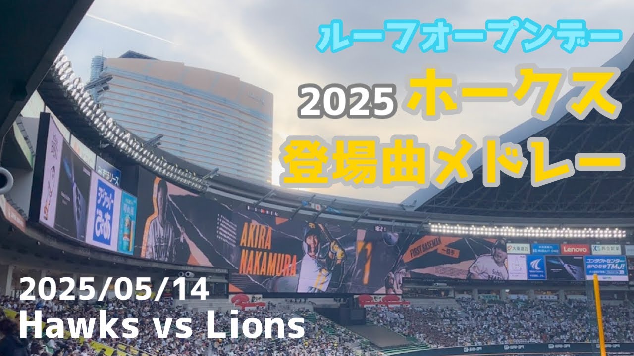 ホークス登場曲メドレー【ルーフオープンデー】(2025/05/14 福岡ソフトバンクホークスvs埼玉西武ライオンズ) Fukuoka SoftBank Hawksソフトバンクドジャーストレードホークスホームランリチャード大谷翔平山川穂高登場曲福岡ソフトバンクホークス NPBHUB.COM | The Fanbase of Nippon Baseball & Nippon Professional Baseball