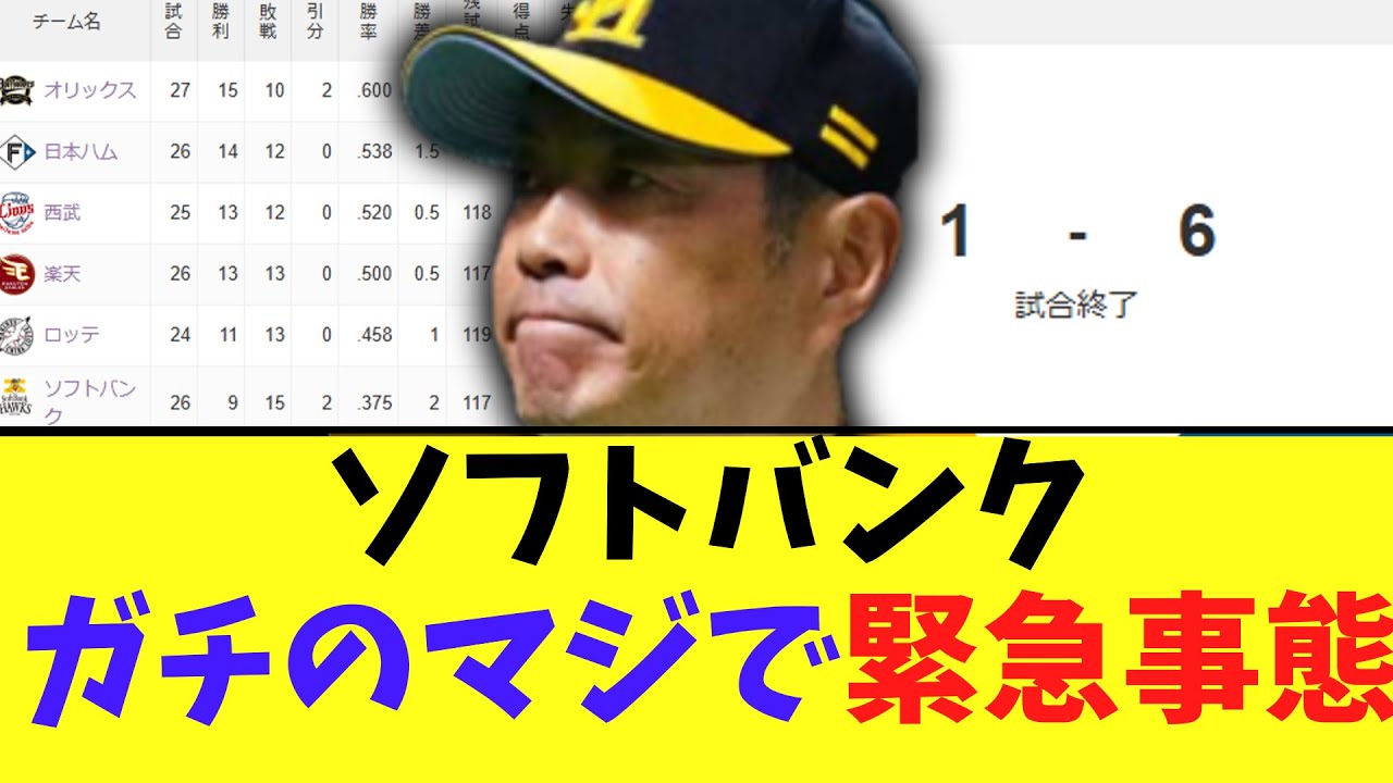 ソフトバンク地獄ソフトバンクが4連敗 借金ワースト6本土地2勝10杯1分山川 が途中交代し今宮が子宮で交代今宮までい なくなったらもう終わりやんもうホームで 10敗してんのかのいないソフ版終わっ たら観客数やべえことになりそうね配信だ ふりでしょ10年連続再会になったら信じ てあげるわ。なんでこんなクソチームに なったんすかね。ホークスの最近の ドラフト知ってます。 戦はまだか他の奴らには勝てないよ。 ソフトバンクは1、2年ぐらい育成 シーズン作ってええやろね。4軍とか さすがに意味わからんことになっとるし。 通過育成しても1軍でなかなか使われない から。あん噂沢にすごいプレッシャー かかる。 高級ドラ就東もいねえもんな。人権ハロっ てソフトバンクの独装は許さない。 レギュラー半分異常離脱したらどこだって 弱いやろ。最後は優勝決まってるからね。 さすがにソフトバンクが最開なのは1時の 間だけやろと思ってたら4月終わっちゃっ たよ。怪我多すぎるからしゃあなやんけ。 山川なんかあったんか?スて今藤に7年 契約してフル出場させる37歳の柳田を 試合に出しながら直す。怪我した習頭を 試合に出し続けて反対側の足に子宮当て られても使い続けて試合前に緊急離脱に 途座して戻ってきてもらうんしかないやろ も国メンテ山川は本人の申し出で足の張り 治療をした今宮病院は行かない冷やした みたいだねこの後緊急ミーティング緊急 ミーティングか誰を取るか考えるんかな 勝ちながら育成するオリックスがそれやっ て優勝しただ。 [音楽]