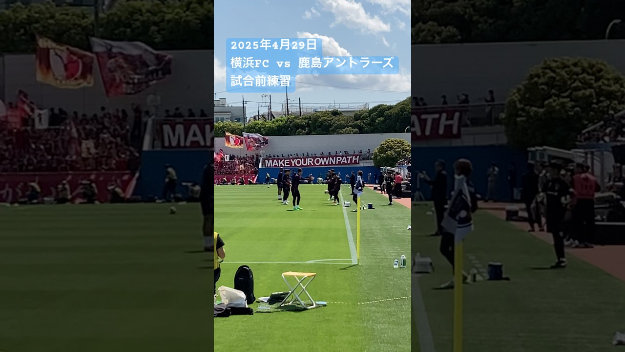 横浜FC選手たち試合前練習の様子。手前左側は #森海渡 選手、手前右側は、#村田透馬 選手 2025年4月29日 鹿島アントラーズ戦 三ツ沢球技場 Hokkaido Nippon-Ham Fighters北海道日本ハムファイターズ村田透 NPBHUB.COM | The Fanbase of Nippon Baseball & Nippon Professional Baseball