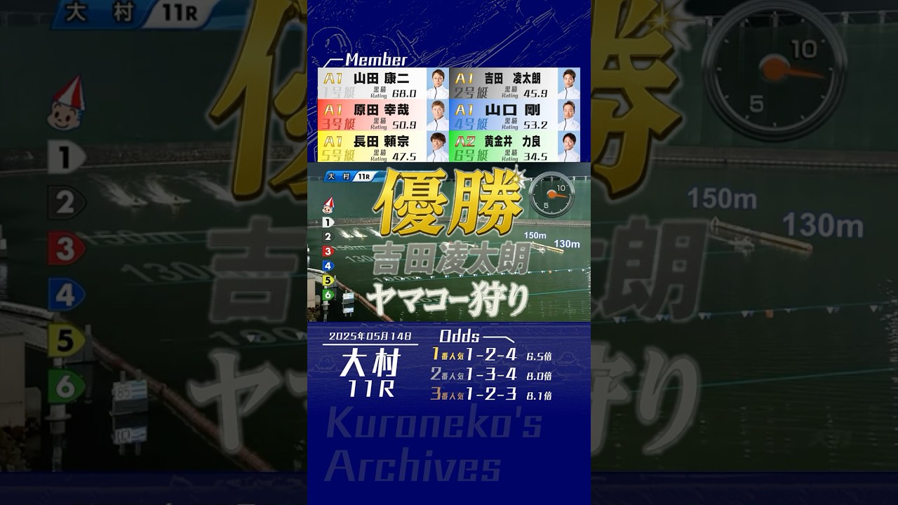 2025年05月14日〔大村11R|優勝戦〕 #競艇 #ボートレース #吉田凌太朗 #差し #山田康二 #道中戦 #スタート合戦 #原田幸哉 #大村初V #ヤマコー狩り