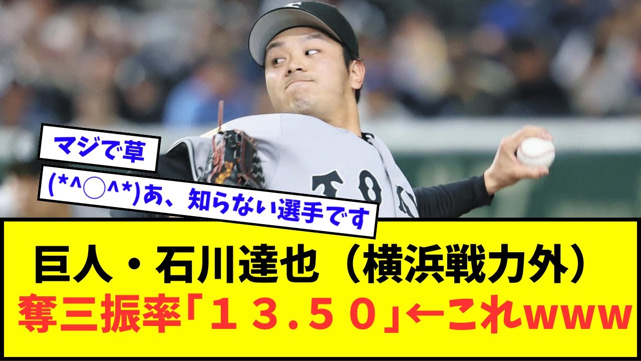 巨人・石川達也(横浜戦力外)、 奪三振率「13.50」←これwwwww【なんJ反応】【プロ野球反応集】