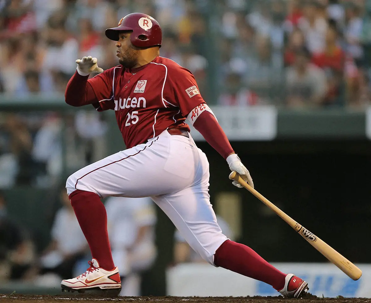 13、14年には楽天でプレー。2年間で50本塁打を放ち、13年にはチーム初のリーグ優勝、日本一に貢献した。