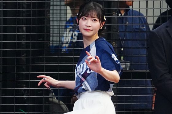 【実際の映像】ヒラヒラミニスカートでの一投が「とんでもなくかわいい」…声優の岩田陽葵さんの始球式