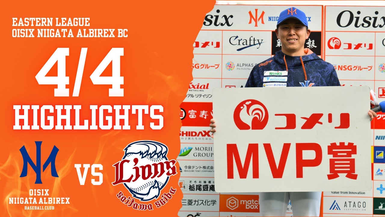 のでもガでいいし オレンジのゆがしてくら [音楽] 走きた後は消えない月 の別れに住めたら厳しい夢姿 [音楽] ゴール 掴み取る だ続けてきたこと はご覧いただきましたよう MVPは 人生は無だけじゃ選手です。おめでとうございます。 [音楽] 笠原選手にはコメリプレゼンツMVP 賞といたしまして、え、コメリ商品券 5000 円分が送られます。え、さらにエコスタで、え、ラーメン参食事件 3000 円分も送られます。おめでとうございます。 [音楽] え、笠原投手にお話伺っていきたいと思いますけども。はい。え、今日のピッチングご自身で振り返っていかがだったでしょうか? はい。そうですね。ま、前回ちょっと先頭フォアボールとかあったんでそこ修正しようと思って精杯 はい。投げました。投げました。 はい。なんで、 え、そのね、また精一杯さんが伝わってきたかと 思います。はい。 え、今日はまたあの地元の新潟での試合でもありますので、多分たくさんまたね、笠原選手のファンの方、またご家族の方いらっしゃるかと思いますけど、今日はご家族の方もいらっしゃってるんですか? そうですね。なんか親がしてるみたいです。 はい。そうですか。はい。 お父さん、お母さん。あ、ご家族の皆さんおめでとうございます。え、やっぱりお父様お母様の前で投げるの久しぶりですか? なんかちょいちょい来てるみたいですね。 あ、そうですか。はい。ね、お父さんお母様にも素敵なまたプレゼントになったかと思いますけども、でも今日のまた勝利投手なかったかもしれませんけれども、 え、ご自身のピーチングがこれからもどうでしょう?続くようないい感触というか、どんなピーチングができました? そうですね。はい。いい感じで [音楽] 投げれてるので、これを継続していきたいなと思ってます。 はい。 あの、試合が始まる前ですけども、笠原投手があの、ガ野の方で山田選手と一緒にこうやっぱ遠投みたいのやられてましたよね。 試合前ですか?あれ違いました。 あ、やってました。やって、 やってましたよね。あれはやっぱり試合前のルーティーンっていう感じなんですか? そうですね。はい。やってます。 そういってまたルーティンなも大切にしながら是非これからもはい。ま、新潟もホームもビジも是非頑張っていただきたいと思っています。はい。え、本日の MVP 笠原投でした。おめでとうございます。 せーの ガあ [音楽]