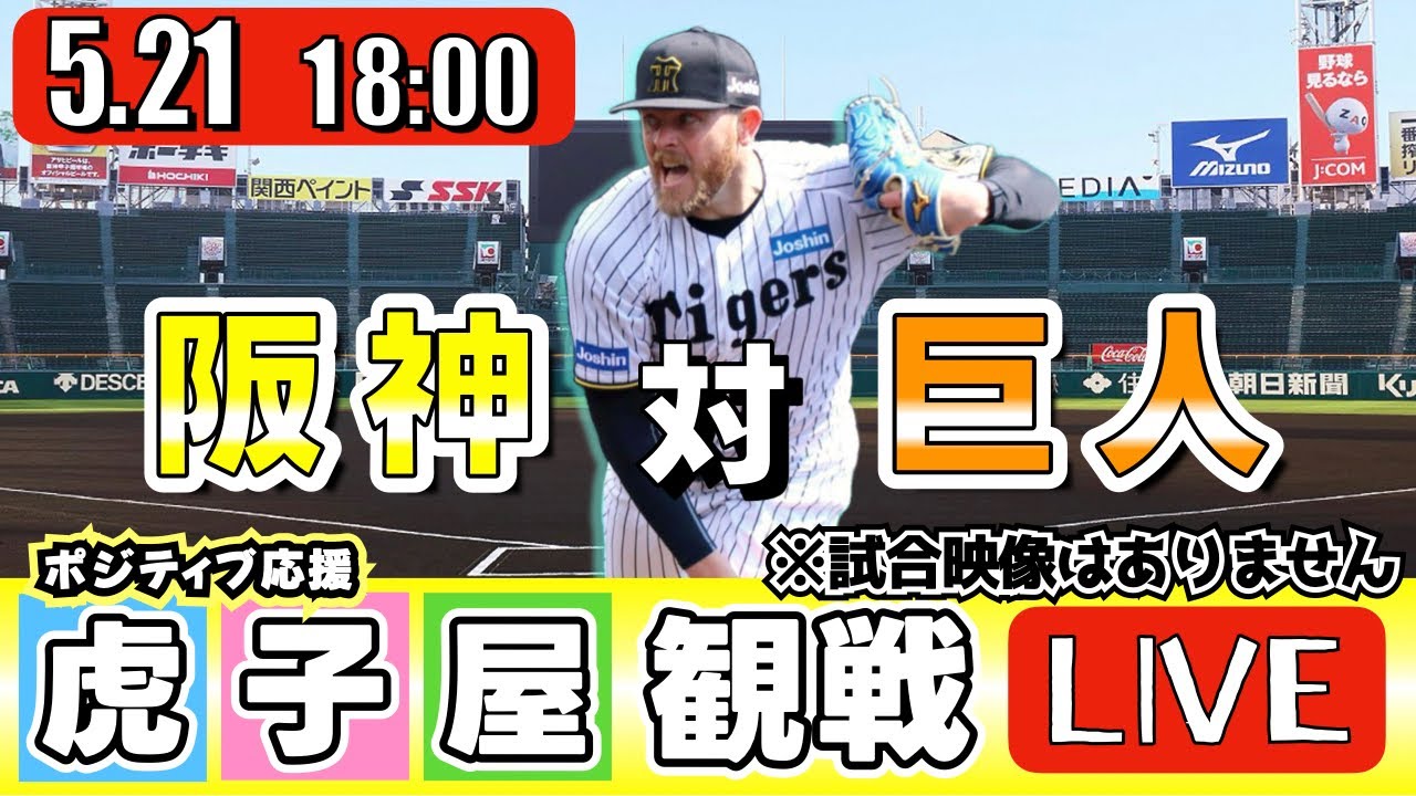 【全力応援 阪神ライブ】5/21 阪神タイガース 対 読売ジャイアンツ の公式戦を阪神ファン夫婦が皆さんと一緒に観戦・応援するLIVE配信です。 先発予想:(阪神)ビーズリー (巨人)井上