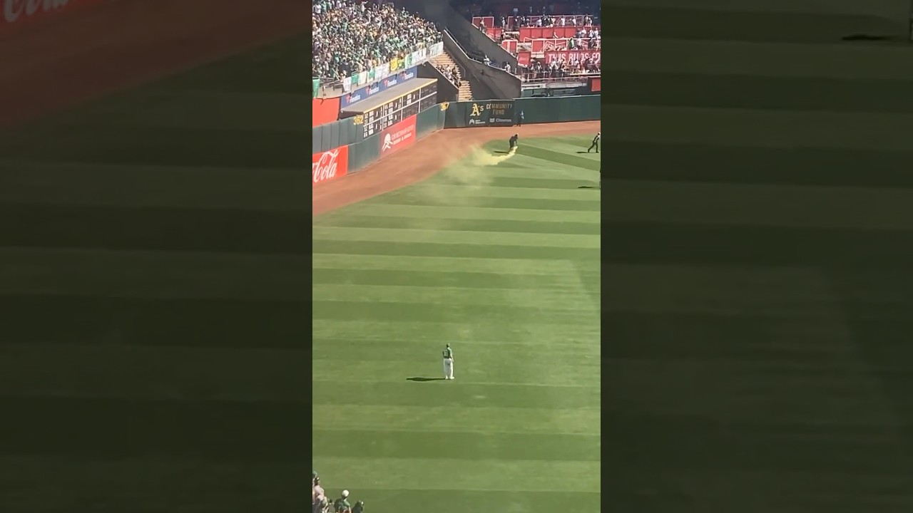 Last As Game!Security Runs Off With Smoke Bomb! #shorts Smoke bombs being thrown at last Oakland As game! security seen running off field with it! #oaklandas #oaklandcoliseum #lastoaklandgame #Yomiuri Giantsスモーク 野球読売ジャイアンツ NPBHUB.COM | The Fanbase of Nippon Baseball & Nippon Professional Baseball