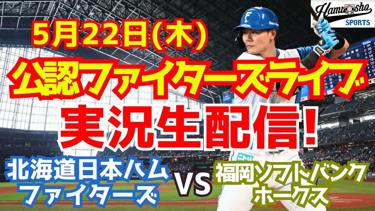 日ハム 日本ハムファイターズ 2025年5月22日 北海道日本ハムファイターズ対福岡ソフトバンクホークス戦を実況生配信でお送りします。