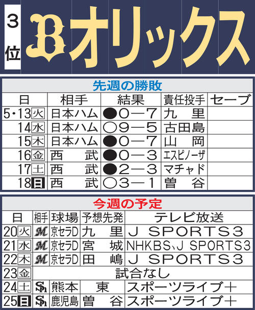 【オリックス】先週のMVP&今週の展望 西川龍馬、好相性ロッテ戦で大台へ nikkansports.comオリックス・岸田護監督、1000安打足踏みの西川に「何も心配はしていない」(サンケイスポーツ) Yahoo!ニュース【オリックス】お得意様のロッテに今季初黒星 先発田嶋は6失点、中継ぎ陣も勢い止められず大敗 nikkansports.com【オリックス】被安打12、9失点でロッテ戦の7連勝ストップ…6失点の田嶋大樹に岸田監督「慎重になった部分が見えた」 au Webポータル【オリックス】田嶋大樹が5回2/3を7安打4四球、6失点で降板…いずれも2死から失点 dメニューニュース