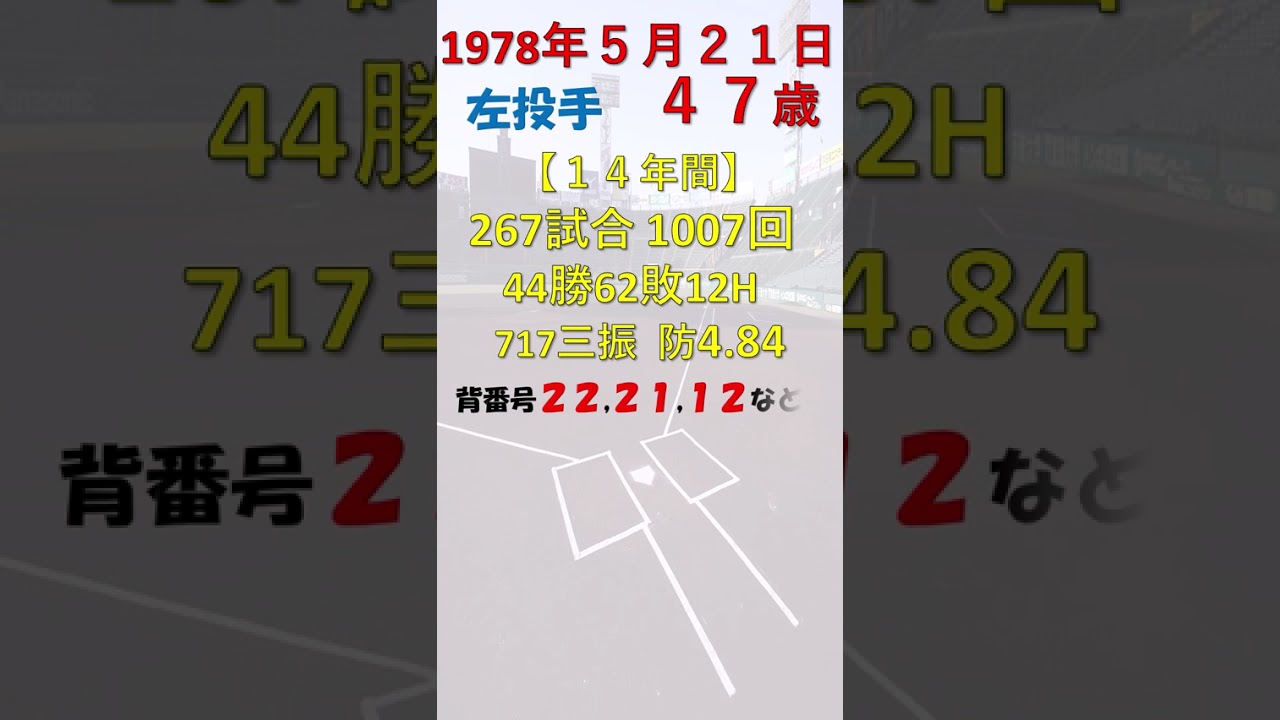 [音楽] 1978年5月21日生まれ、今日が47 歳の誕生日の元プロ野球選手は誰でしょう ?現役14年間で267試合、152試合 2先発、44勝62敗12ホールドの左 投手、和歌山県立成林高校、東北福大学 から2000年ドラフト2位で横浜に入団 。2年目の2002年にローテーション 11勝石川正典選手と新人王を争いました 。2003年は開幕投資を務めるも参照に 終わっています。2004年10月広島線 であと1人のところでノーヒットノー乱を 逃しました。10年5月金銭トレード レロッテ13年戦力外通告を受け阪神に 入団しますが一軍登板はなく引退65年 からDNAの打撃投手20年からスカウト に就任しています [音楽] 。吉見裕二選手でした。