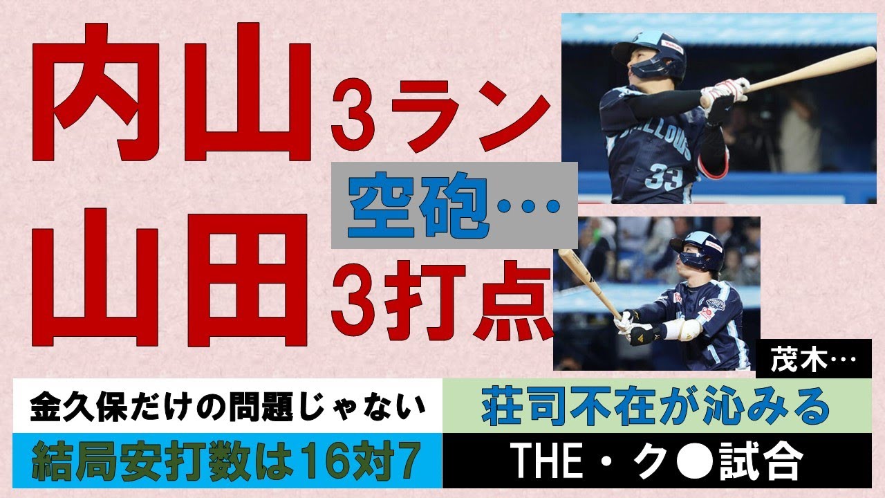 【THE・ク●試合】内山3ランも山田3打点も空砲 金久保が8回に逆転許したけど、1人だけの問題じゃない 荘司不在が身に染みる結果に【茂木・・・】2025-GAME34