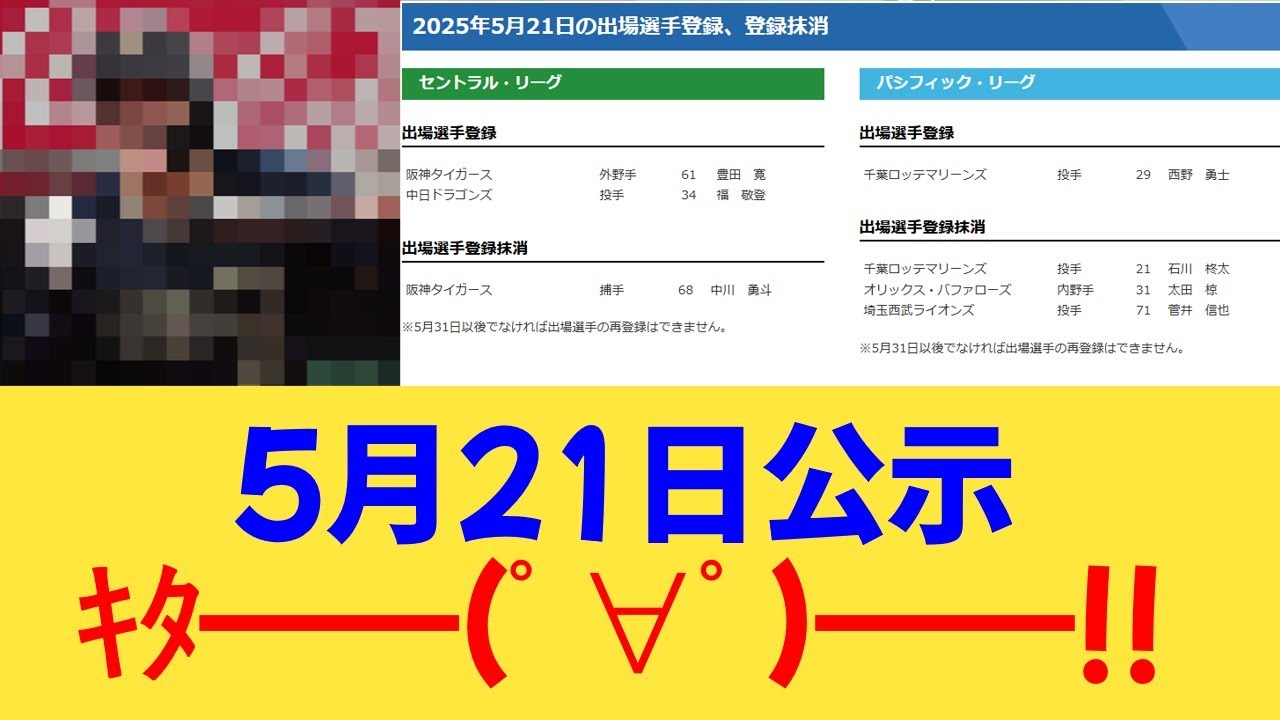 5月21日公示きたー太田椋、石川柊太登録抹消などなど【反応集】【パ・リーグ】