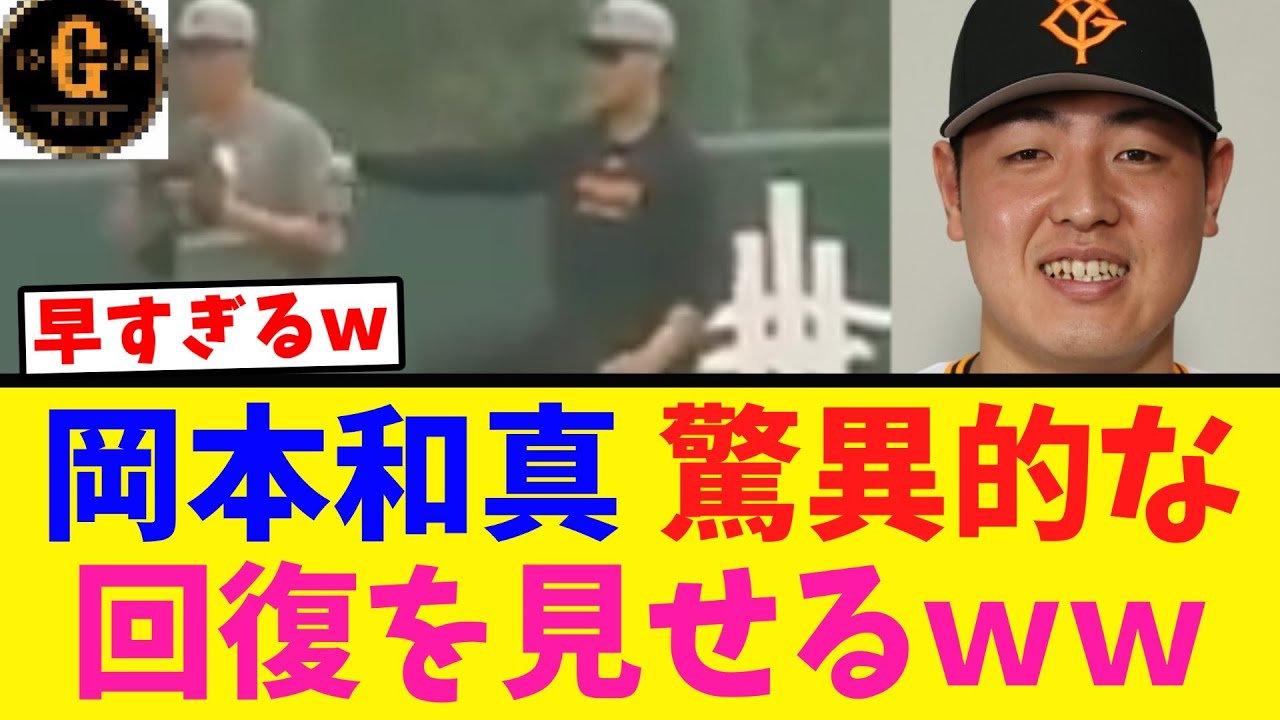 か、脅威的な回復を見せる。 左肘の人体総々で離脱している巨人の岡本かが 22 日ジャイアンツ球場でリハビりを行った。岡本は 6 日の阪神で不傷後はサワに包帯を巻き固定していたが、この日は包帯も取れスローイングの練習も行った。 こは2 週間で包帯取れるって早くない?もう固定する必要はないのかよ。 思ったより早いと思ったの俺だけか。もっと長期離脱。 [音楽] やっぱ回復力すごいな。 経過は今のところ順調で何より3 ヶ月の予定だったけどワンちゃんもう少し早く帰ってこれそうか。 無理はしないで欲しいけどお声みたいに2 ヶ月が2 週間で戻ってきたパターンもあるからな。これは期待してしまう。 9月かと思ってたけど8 月中に復帰るかもな。6月1 杯はリハビリ、7月に2軍線出場8 月頭から1軍なら暑い。 やっぱ球腕じゃなくて良かったな。投げれるのはでかいわ。 右手だったら投げるだけじゃなく打撃の押し込みにも影響するからな。 マジで不幸中の幸い。まだまだ時間かかる のは分かるけど、投げる姿が見れて人安心 。まろもだけど復帰までのプログラムは トレーナーが組んでるし焦らせることは ないと思うけど少しずつ復帰に近づいてる のは楽しみだね。ご視聴ありがとうござい ました。皆さんのコメントもお待ちしてい ます。それではまた次の動画で会い ましょう。
