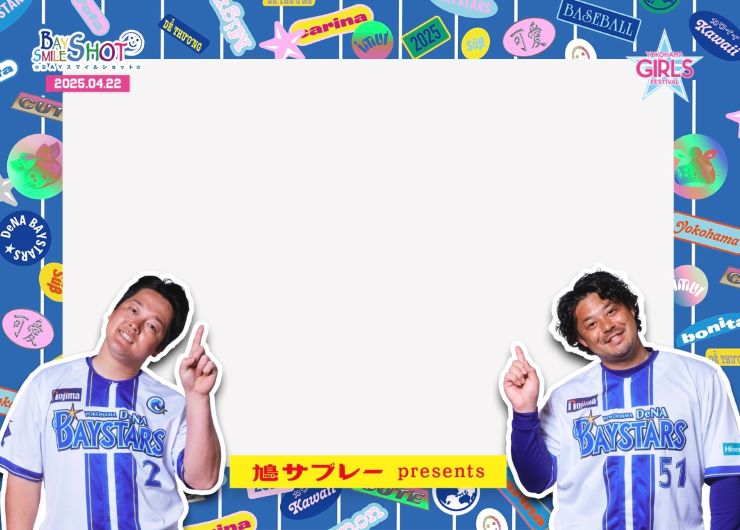 試合前と2回表/4回表終了時に実施している「鳩サブレーpresents BAYスマイルショット」のフレームがガルフェスデザインで登場!
